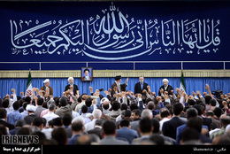 به مناسبت عید مبعث پیامبر گرامی اسلام حضرت محمد مصطفی صلیاللهعلیهوآلهوسلم، جمعی از مسئولان و کارگزاران نظام، سفرای کشورهای اسلامی و اقشار مختلف مردم با حضرت آیتالله خامنهای رهبر انقلاب اسلامی دیدار کردند.