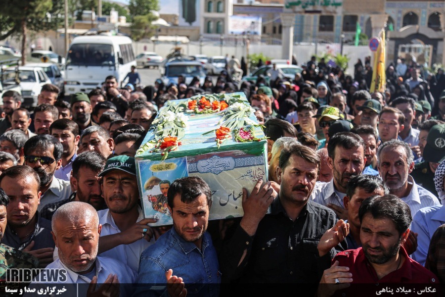 شهید مدافع حرم عباس حسنی بر دستان مردم شهید پرور شیراز تشییع شد.