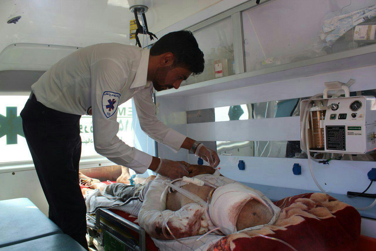 تاکنون یک مصدوم 75 ساله که بر اثر عملیات انتحاری از ناحیه سر و دست دچار شکستگی شده بود به بیمارستان خاتم الانبیا تایباد منتقل و از آنجا به مشهداعزام شده است.