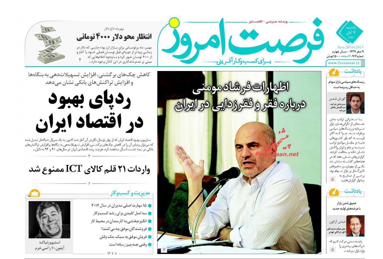 در پیشخوان امروز ، صفحه نخست روزنامه های اقتصادی یکشنبه 7 آبان 1396 را مشاهده می کنید.