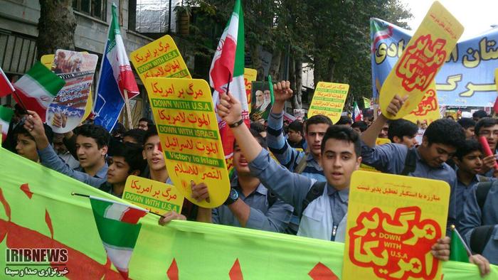 مرگ برآمریکا شعار اصلی شرکت کنندگان در این مراسم است .