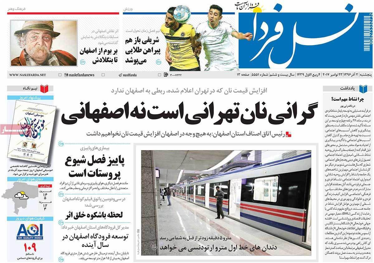 عناوین مهم روزنامه های اصفهان،2 آذر
