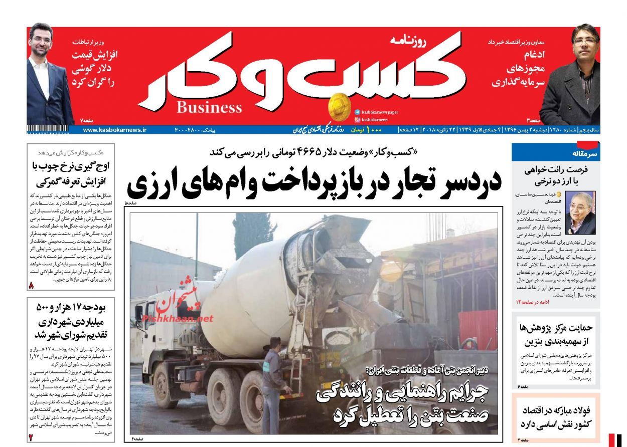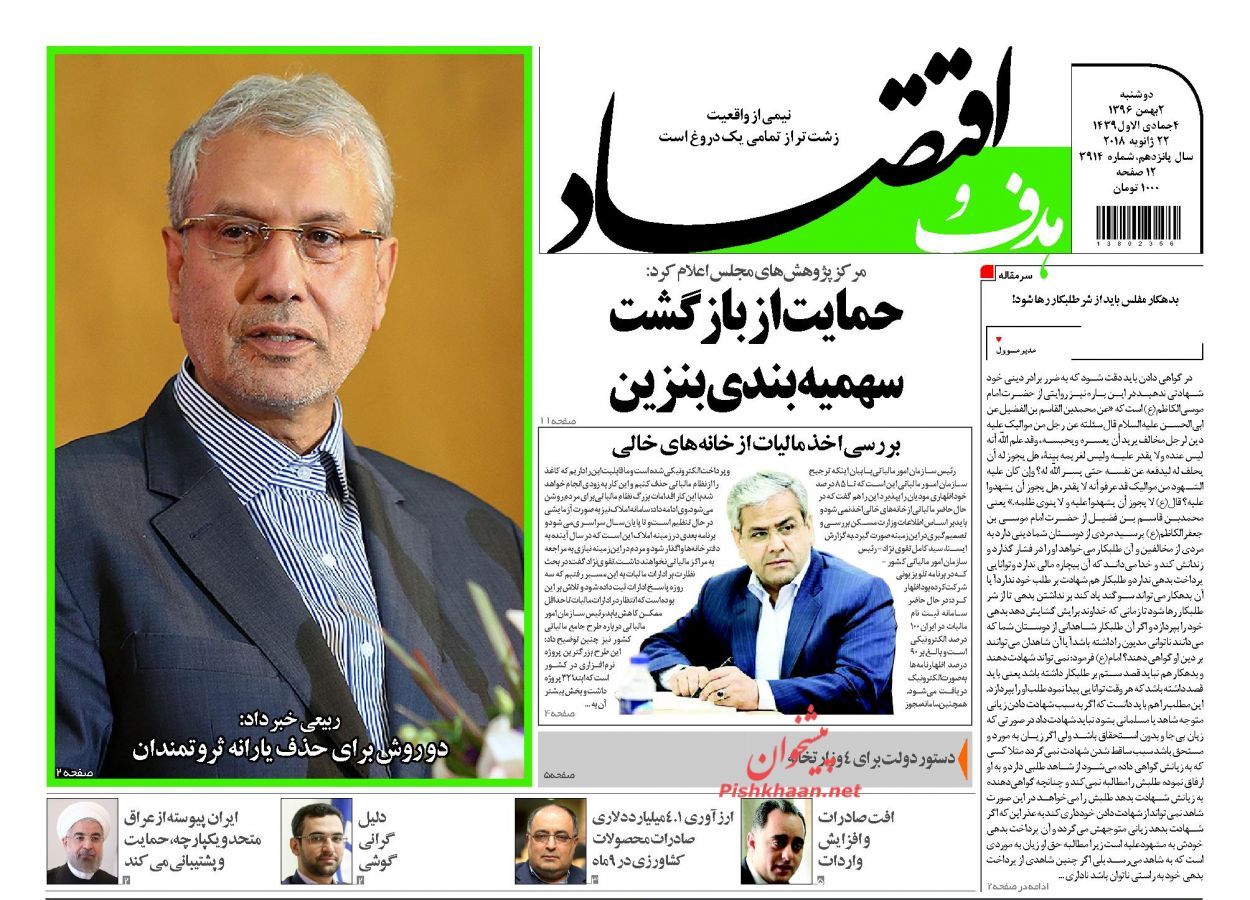 در پیشخوان امروز ، صفحه نخست روزنامه های اقتصادی دوشنبه 2 بهمن ماه 1396 را مشاهده می کنید.
