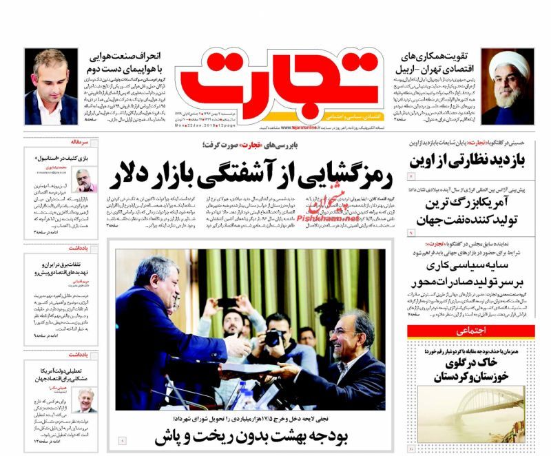 صفحه نخست روزنامه های اقتصادی دوشنبه 2 بهمن ماه