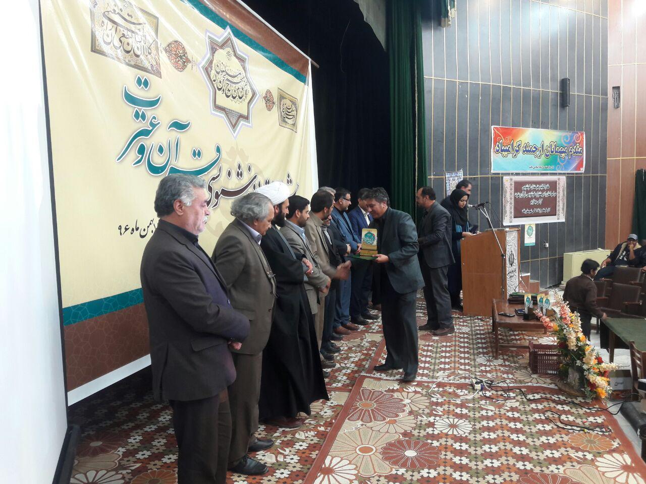 همچنین به آثارِ علی خونکاری-مسلم کریمی - فاطمه گنج کریمی- منیژه حسین رضایی و رضا بیگلری ،لوح تقدیر جشنواره استانی خوشنویسی قرآ ن وعترت تعلق گرفت.