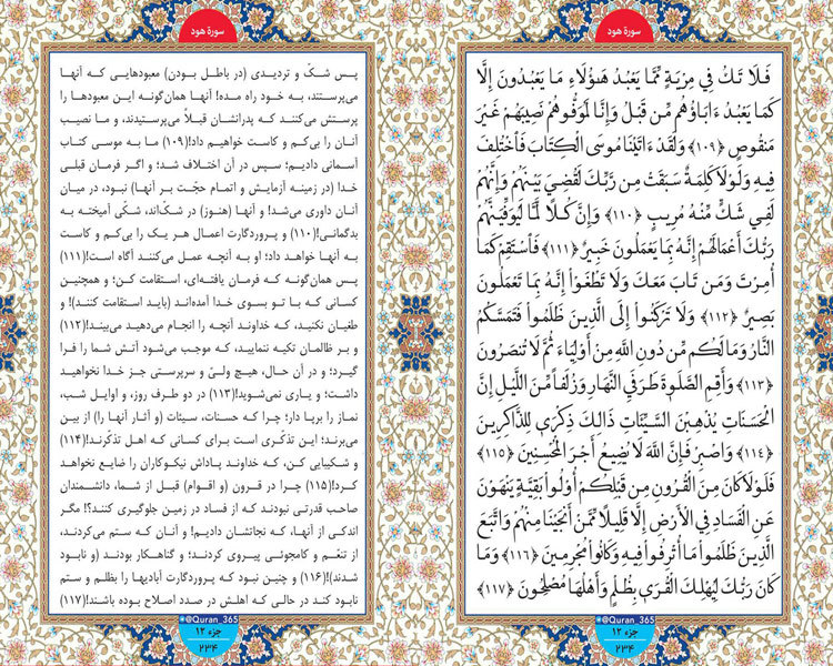 "وَنُنَزِّلُ مِنَ الْقُرْآنِ مَا هُوَ شِفَاءٌ وَرَحْمَةٌ لِلْمُؤْمِنِینَ وَلَا یَزِیدُ الظَّالِمِینَ إِلَّا خَسَارًا " و قرآن را نازل می کنیم که شفا و رحمت برای مؤمنان است و ستمگران را جز خسران (و زیان) نمی افزاید. امروز سوره هود آیات 109 تا 117 را با هم می خوانیم.
