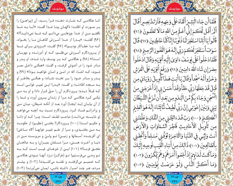 "وَنُنَزِّلُ مِنَ الْقُرْآنِ مَا هُوَ شِفَاءٌ وَرَحْمَةٌ لِلْمُؤْمِنِینَ وَلَا یَزِیدُ الظَّالِمِینَ إِلَّا خَسَارًا " و قرآن را نازل می کنیم که شفا و رحمت برای مؤمنان است و ستمگران را جز خسران (و زیان) نمی افزاید. امروز سوره یوسف آیاتی 96 تا 103 را با هم می خوانیم.