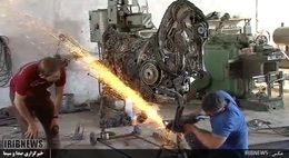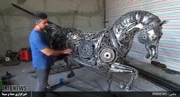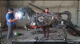دوجوان مراغه ای با استفاده از قطعات کهنه خودرو و فلزات دور ریز مجسمه های زیبایی می سازند .