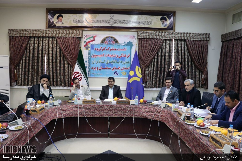 اعضاي کارگروه فرهنگي وتبليغات کميسيون مبارزه با قاچاق کالا و ارز استانهاي سمنان و يزد در اين نشست به تبادل نظر در خصوص پيشگيري از قاچاق کالا و ارز و حمايت از کالاي ايراني پرداختند.