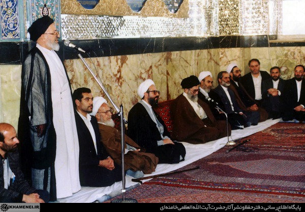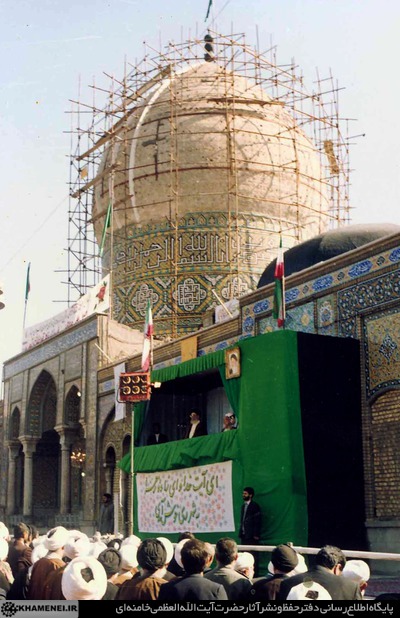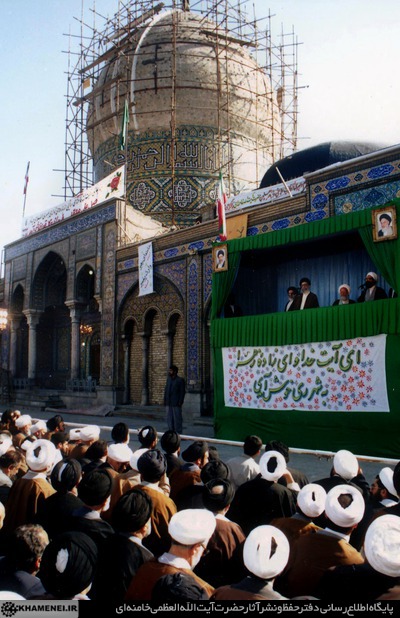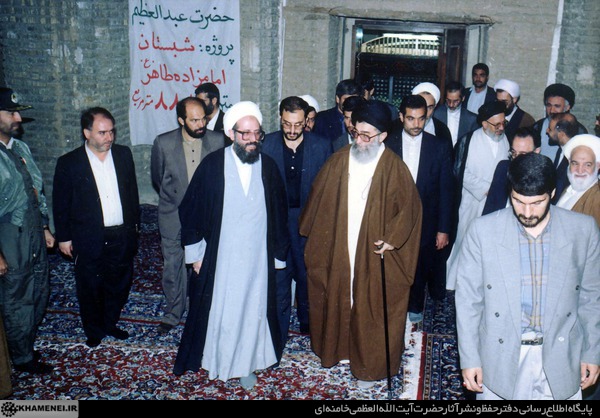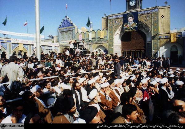 حضور رهبر انقلاب در مرقد مطهر حضرت عبدالعظیم حسنی (ع) و سخنرانی در جمع مردم شهر ری ۱۳۷۳/۸/۵