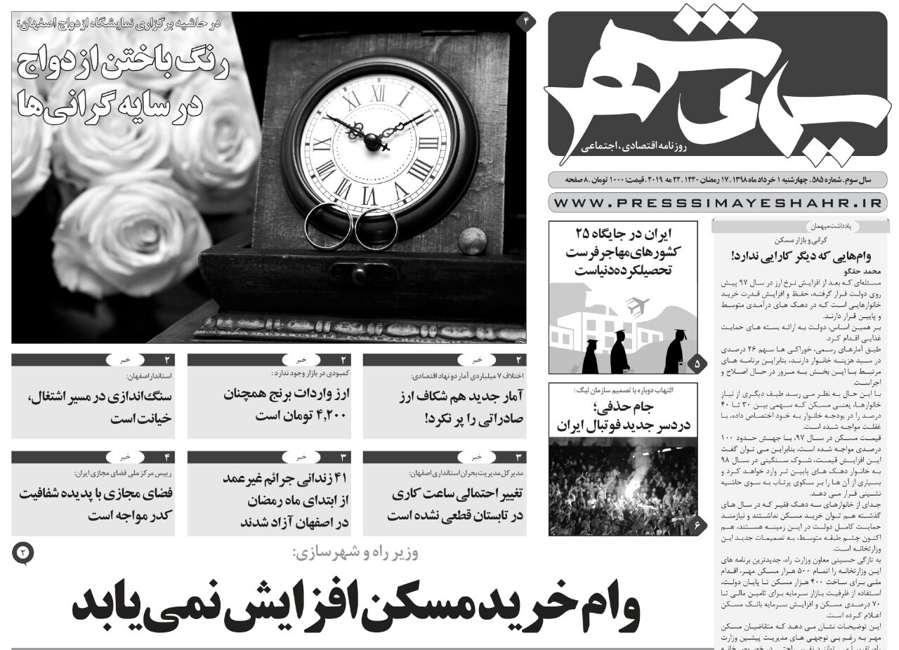 رنگ باختن ازدواج در سایه گرانی ها و فقط پرداخت اختیاری مجاز است!، عنوان های پر رنگ صفحه نخست امروز روزنامه های اصفهان است.