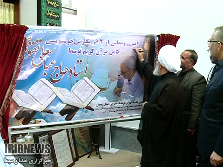 به گزارش خبرگزاری صداوسیما مرکز زنجان ؛ درمراسمی از قرآن دست نویس که توسط عباسعلی تقوی کتابت شده بود رونمایی شد.
