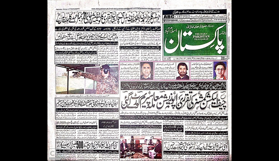 - "مصطفی کمال" رئیس حزب پاک سرزمین: دولت برای تمدید فعالیت فرمانده ارتش پاکستان نیاز به کمک احزاب مخالف است.