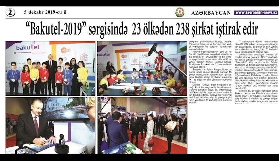 - نمایشگاه بین المللی "باکو تل -۲۰۱۹" با شرکت ۲۳۸ شرکت از ۲۳ کشور در باکو برگزار شد.