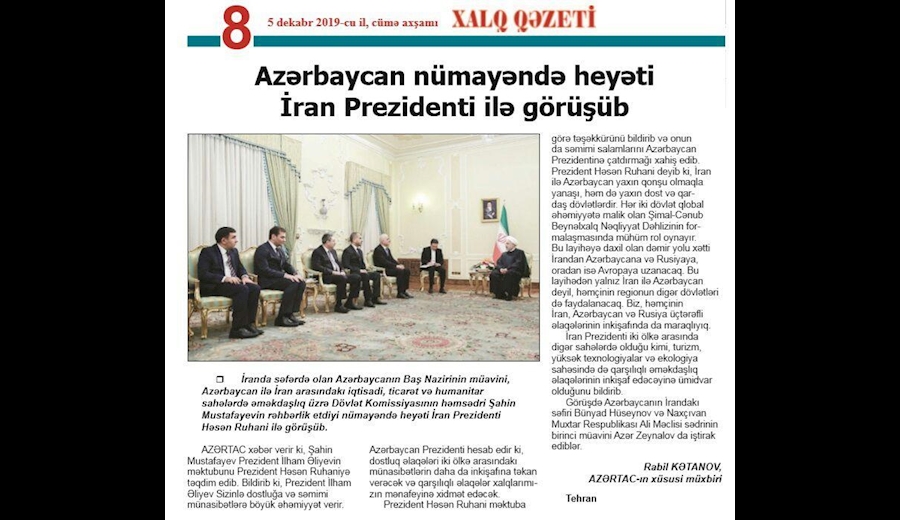 - هیئت جمهوری آذربایجان در سفر به جمهوری اسلامی ایران با رئیس جمهوری این کشور دیدار کرد.