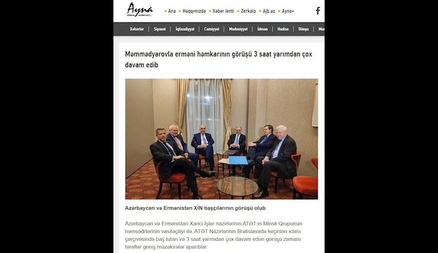 - وزرای امور خارجه جمهوری آذربایجان و ارمنستان به مدت ۳ ساعت در "براتسلاوا" درباره مناقشه قره باغ کوهستانی گفتگو کردند.