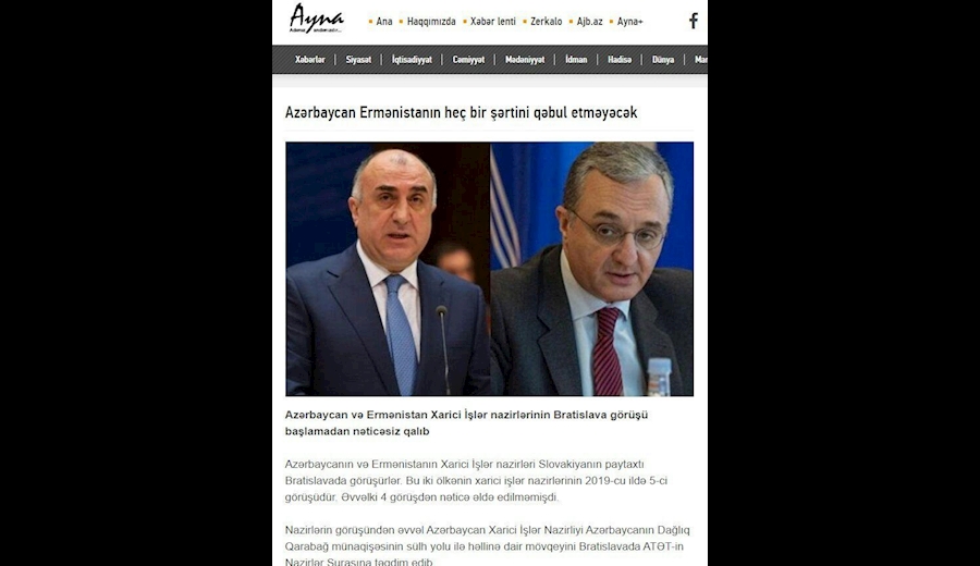 - جمهوری آذربایجان هیچ یک از شروط ارمنستان درباره مناقشه "قره باغ" را نخواهد پذیرفت.
