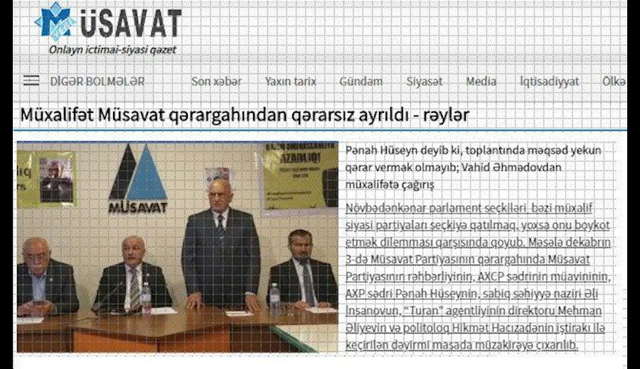 - دیدار احزاب مخالف دولت در ستاد مرکزی حزب "مساوات" جمهوری آذربایجان در خصوص شرکت و یا عدم شرکت در انتخابات پیش روی مجلس بدون نتیجه پایان یافت.