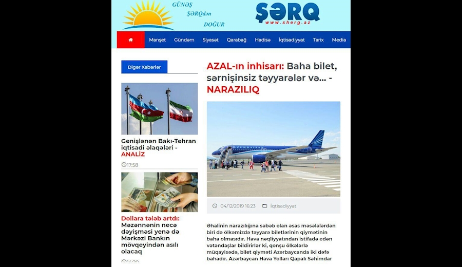 - گرانی بلیط هواپیما موجب افزایش نارضایتی و کاهش تعداد مسافران شرکت هواپیمایی آزال جمهوری آذربایجان شده است.