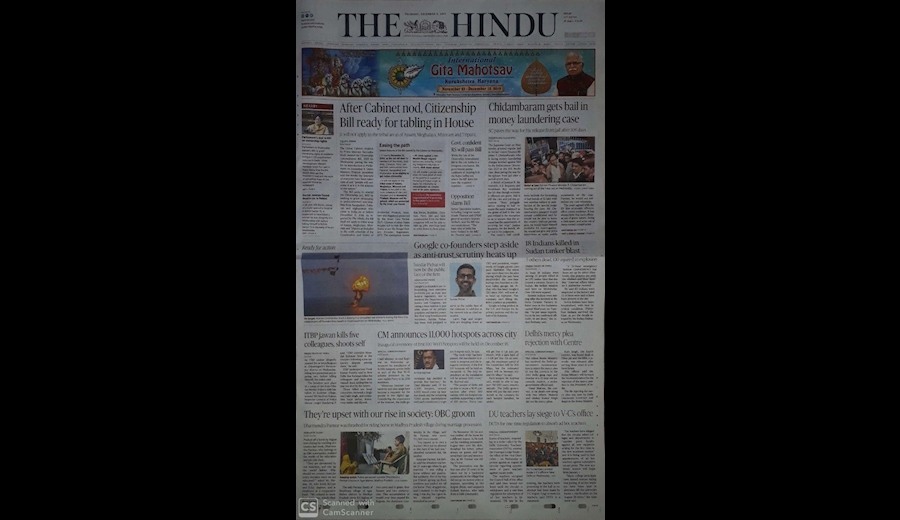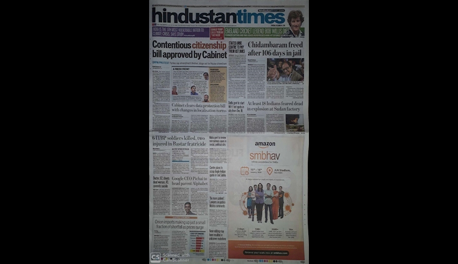 - موافقت کابینه دولت مرکزی هند با تغییر تابعیت (این لایحه در آینده نزدیک در مجلس هند ارائه میشود و چنانچه مجلس هند آن را تصویب کند، به پناهندگان غیر مسلمانان از جمله هندو، سیک، پارسی، مسیحی، جین و بودایی از کشورهای پاکستان، بنگلادش و افغانستان که به هند میآیند تابعیت داده میشود.) احزاب مخالف و برخی گروههای اجتماعی از این لایحه انتقاد کردند.