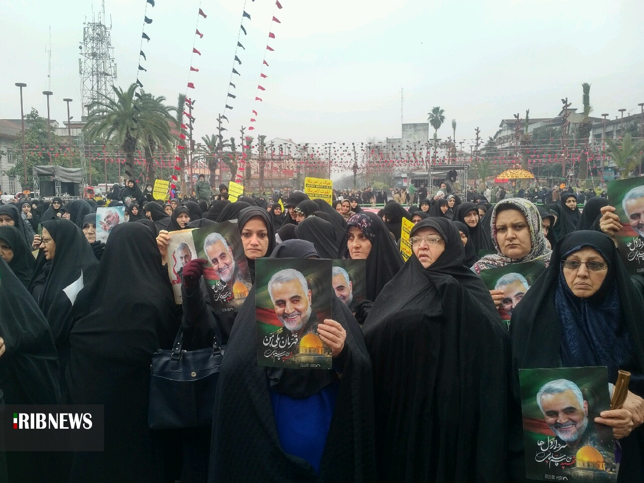 مردم انقلابی و قدرشناس دیار میرزا امروز برای پاسداشت سردار شهید حاج قاسم سلیمانی در رشت اجتماع کردند.