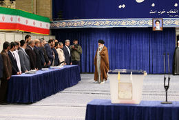 حضرت آیت الله خامنه ای صبح امروز (جمعه) در اولین دقایق آغاز رأی گیری رأی خود را به صندوق انداختند.