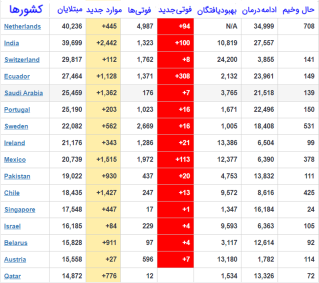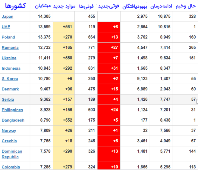 جدیدترین اخبار و رویدادهای مربوط به شیوع ویروس کرونا در جهان به شرح ذیل است: