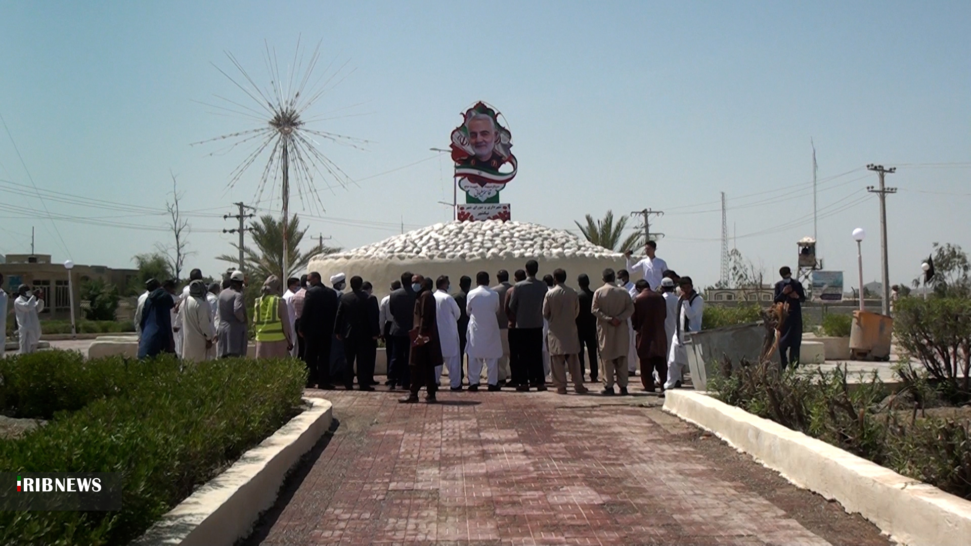 به گزارش خبرگزاری صدا و سیما ، مرکز سیستان و بلوچستان ، سرهنگ صفوی فرمانده ناحیه مقاومت سپاه نیکشهر گفت : همزمان با هفته دفاع مقدس و به پاس خدمات بی بدیل شهید سلیمانی به نظام و انقلاب و همچنین حضور مقتدرانه در جبهه های هشت سال دفاع مقدس برای یادبود سردار دلها از تمثال  شهید سلیمانی در میدان امام حسین نیکشهر رونمایی شد.