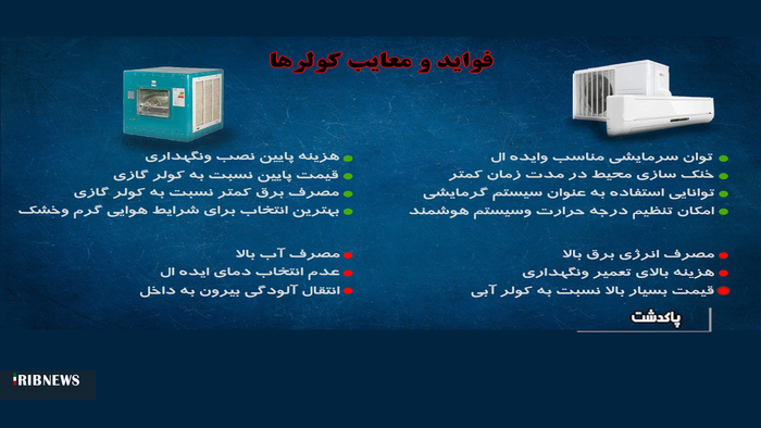وی چند نکته هم در خصوص استفاده از کولرهای آبی یادآور شد و گفت: استفاده از سایه بان بر روی کولر آبی و عایق بندی کانال کول در کنار سرویس های دوره ای مثل تعویض پوشال و روغن کاری یاتاقان ها تا حد زیادی بازدهی کولرهای آبی را افزایش می دهد.