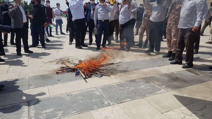 به گزارش خبرگزاری صدا و سیما ؛ مراسم راهپیمایی خودجوش و آتش زدن پرچم رژیم صهیونیستی و آمریکا در میادین شهر تهران با رعایت شیوه نامه های بهداشتی و فاصله های اجتماعی در حال برگزاری است .