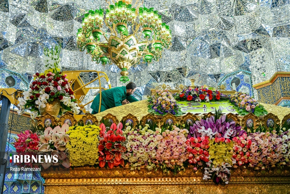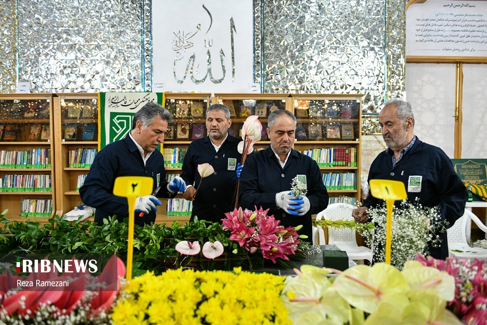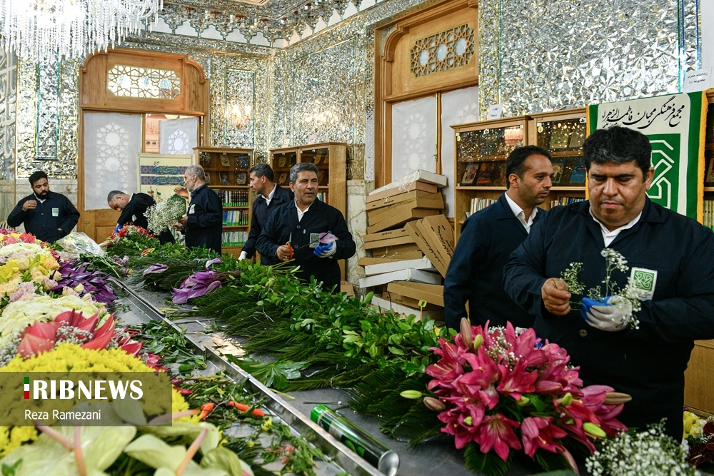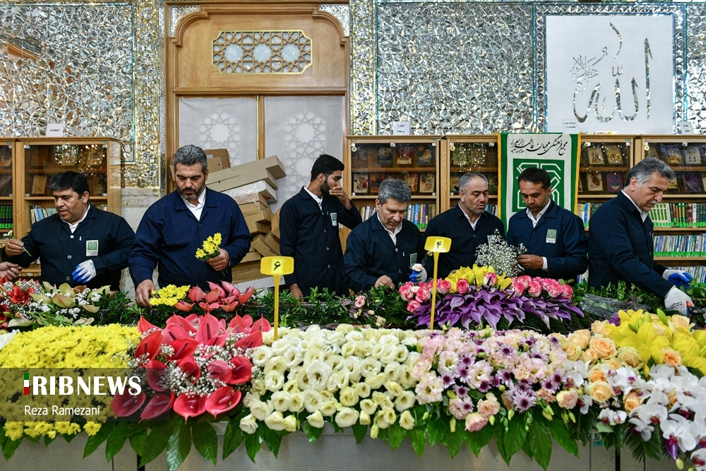 در آستانه دهه کرامت و فرا رسیدن میلاد با سعادت حضرت معصومه (س)، آیین گل آرایی ضریح مطهر کریمه اهلبیت، با حضور ۵۰ خادم گل آرا حرم مطهر امام رضا (ع) در آستان مقدس قم برگزار شد.