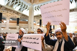 مراسم سالگرد ارتحال جانسوز بنیانگذار جمهوری اسلامی ایران امام خمینی (ره) و بزرگداشت قیام جاودانه پانزدهم خرداد و تجلیل از شهدای گرانقدر آن از سوی رهبر معظم انقلاب اسلامی حضرت آیت الله خامنهای در شبستان امام خمینی (ره) حرم مطهر حضرت معصومه (س) با حضور علما و مردم قم برگزار شد.