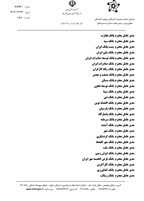 خبرگزاری صداوسیما از سازمان حمایت مصرف کنندگان و تولیدکنندگان؛ آقای حسین فرهید زاده معاون وزیر صمت و مدیر عامل سازمان حمایت مصرف کنندگان و تولیدکنندگان، با ارسال نامهای خطاب به ۲۸ مدیر عامل بانک و موسسه اعتباری، خواستار رفع مسدودی حساب وکالتی متقاضیان خرید خودروهای تولید داخل به مبلغ یکصد میلیون تومان به نام این سازمان شد.