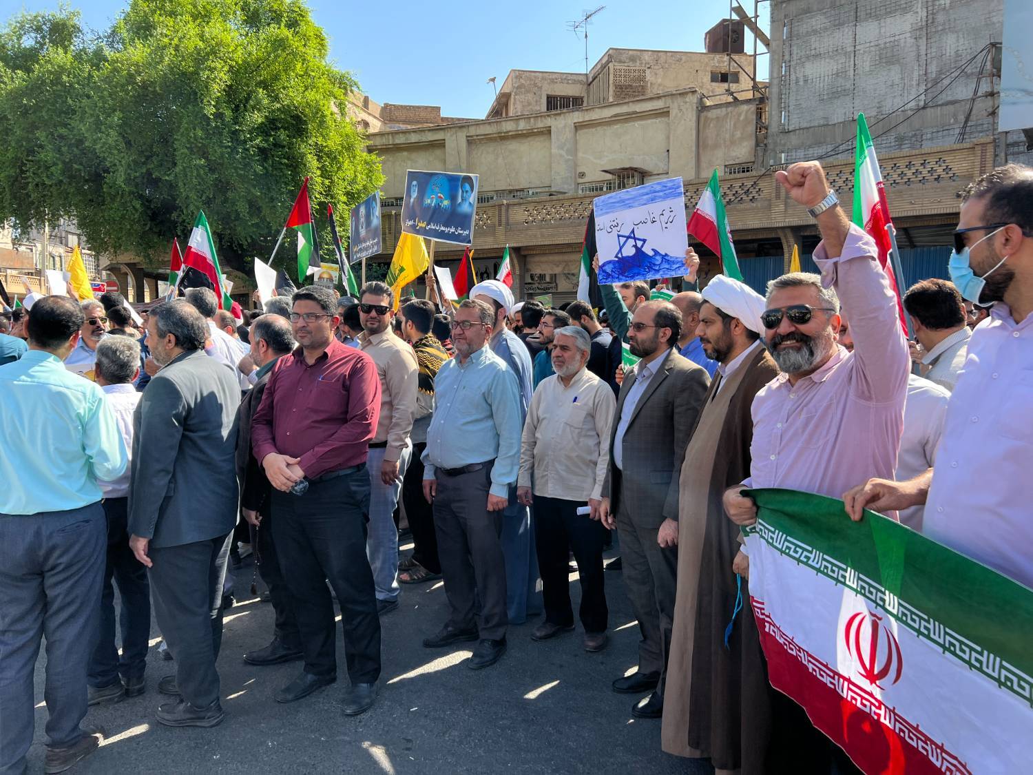 به گزارش خبرگزاری صداوسیما استان خوزستان ، همزمان با راهپیمایی بزرگ مردم ولایتمدار اهواز در حمایت از مردم مظلوم فلسطین و اعلام انزجار از رژیم جنایتکار و اشغالگر صهیونیستی مدیرکل و کارکنان دامپزشکی استان خوزستان، با حضور در این تجمع، جنایات رژیم صهیونیستی در غزه را محکوم کردند.