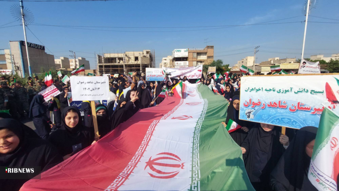 راهپیمایی روز ملی مبارزه با استکبار جهانی، صبح امروز (۱۳ آبان) در اهواز همزمان با سراسر کشور با شعار " نظم نو جهانی، با نسل آرمانی، در حال برگزاری است.
