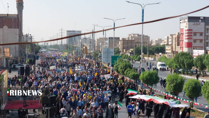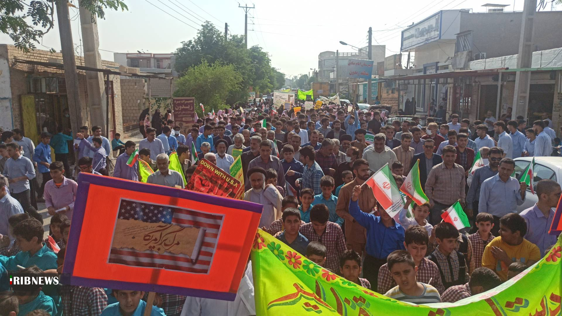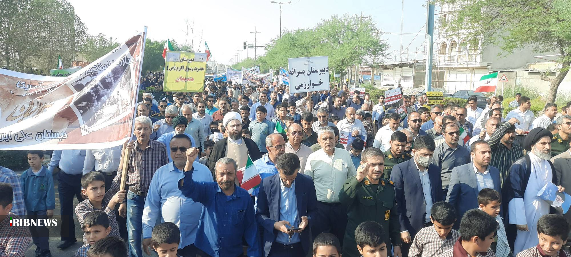 امروز و از ساعت‌های اولیه صبح، مردم شهر‌های مختلف استان خوزستان بار دیگر همبستگی و اتحاد خود را در دفاع از آرمان‌های انقلاب و حفظ ایران اسلامی نشان دادند و با سر دادن شعار مرگ بر اسراییل و مرگ بر آمریکا انزجار خود را از «شیطان بزرگ» فریاد زدند.