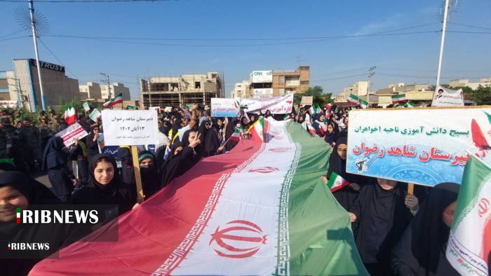 راهپیمایی گسترده یوم‌الله ۱۳ آبان صبح امروز با حضور پرشور مردم و دانش‌آموزان سراسر خوزستان برگزار شد.