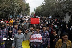 صبح امروز سیزدهم آبان ماه ۱۴۰۲، راهپیمایی روز ملی مبارزه با استکبار جهانی، و مراسم یومالله ۱۳ آبان، با حضور مردم و دانشآموزان و با شعار محوری «نظم نو جهانی با نسل آرمانی» در شیراز و جزیره کیش و کاشان و سایر استانهای کشور برگزار شد. حاضران در راهپیمایی امروز، ضمن محکومیت جنایتهای رژیم غاصب صهیونیستی، با همدستی آمریکای جنایتکار، حمایت خود را از آرمانهای انقلاب اسلامی و گروههای مقاومت فلسطینی اعلام و همراهی و همدردی خویش با ملت مقاوم و مظلوم غزه را، اعلام مینمایند.
