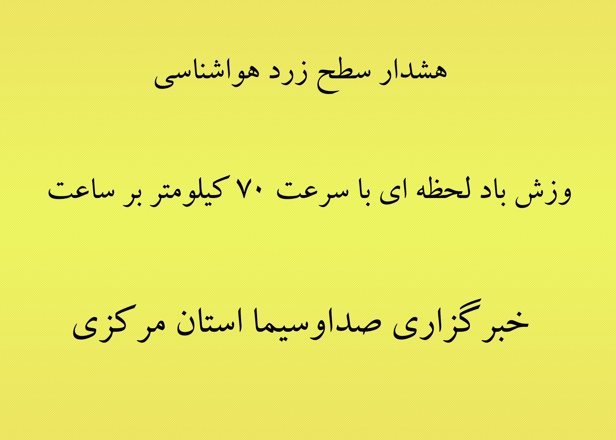 به گزارش خبرگزاری صداوسیمای مرکز اراک؛ اداره کل هواشناسی استان مرکزی هشدار هواشناسی سطح زرد شماره ۴۱ را صادر کرد.