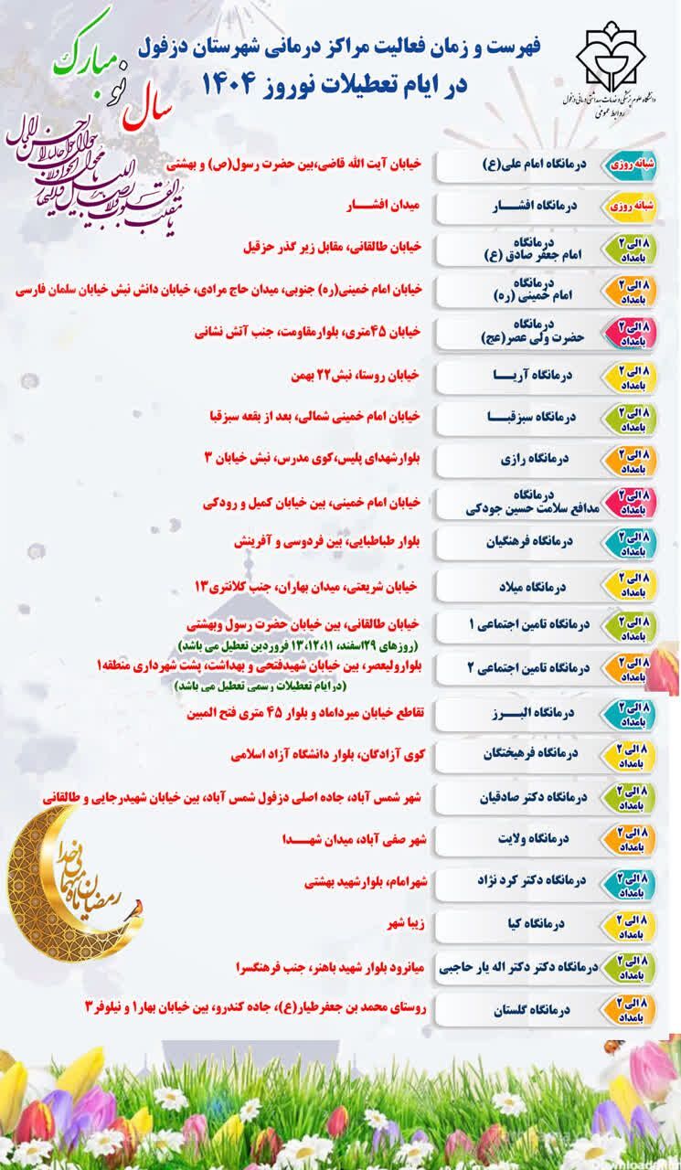 فهرست درمانگاه‌ها و مراکز تصویربرداری فعال در ایام نوروز ۱۴۰۴ در دزفول