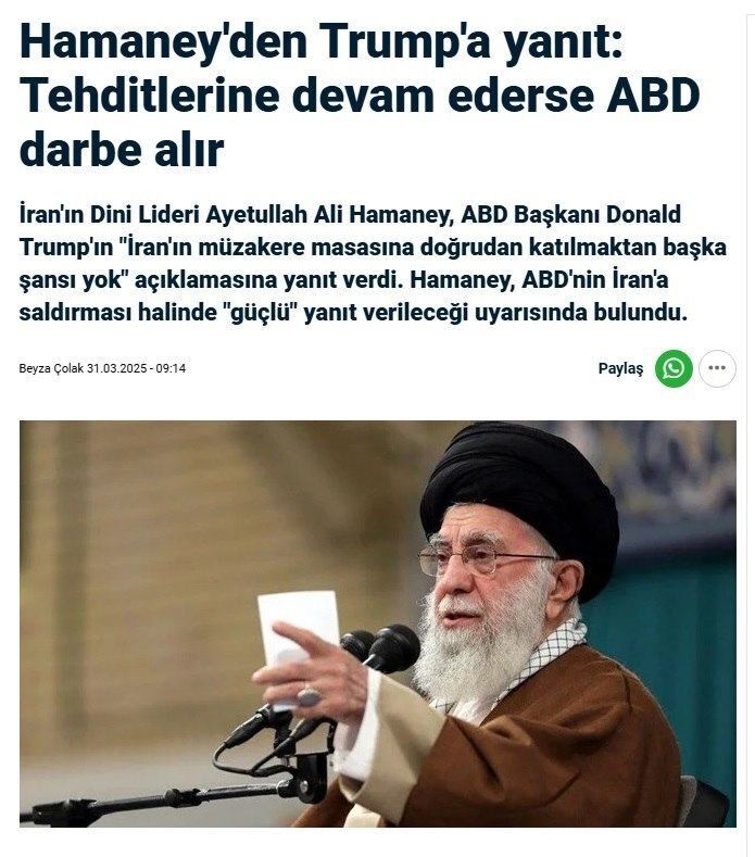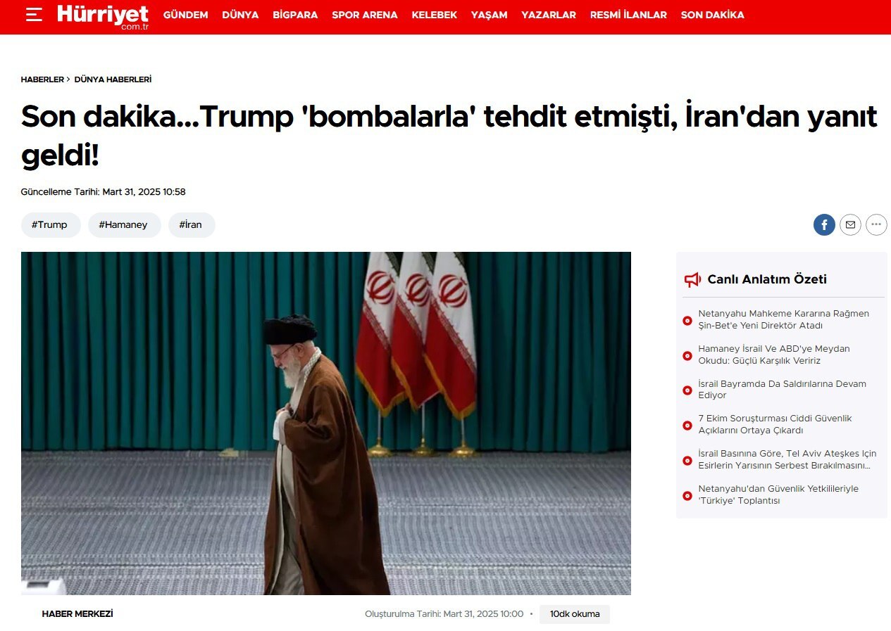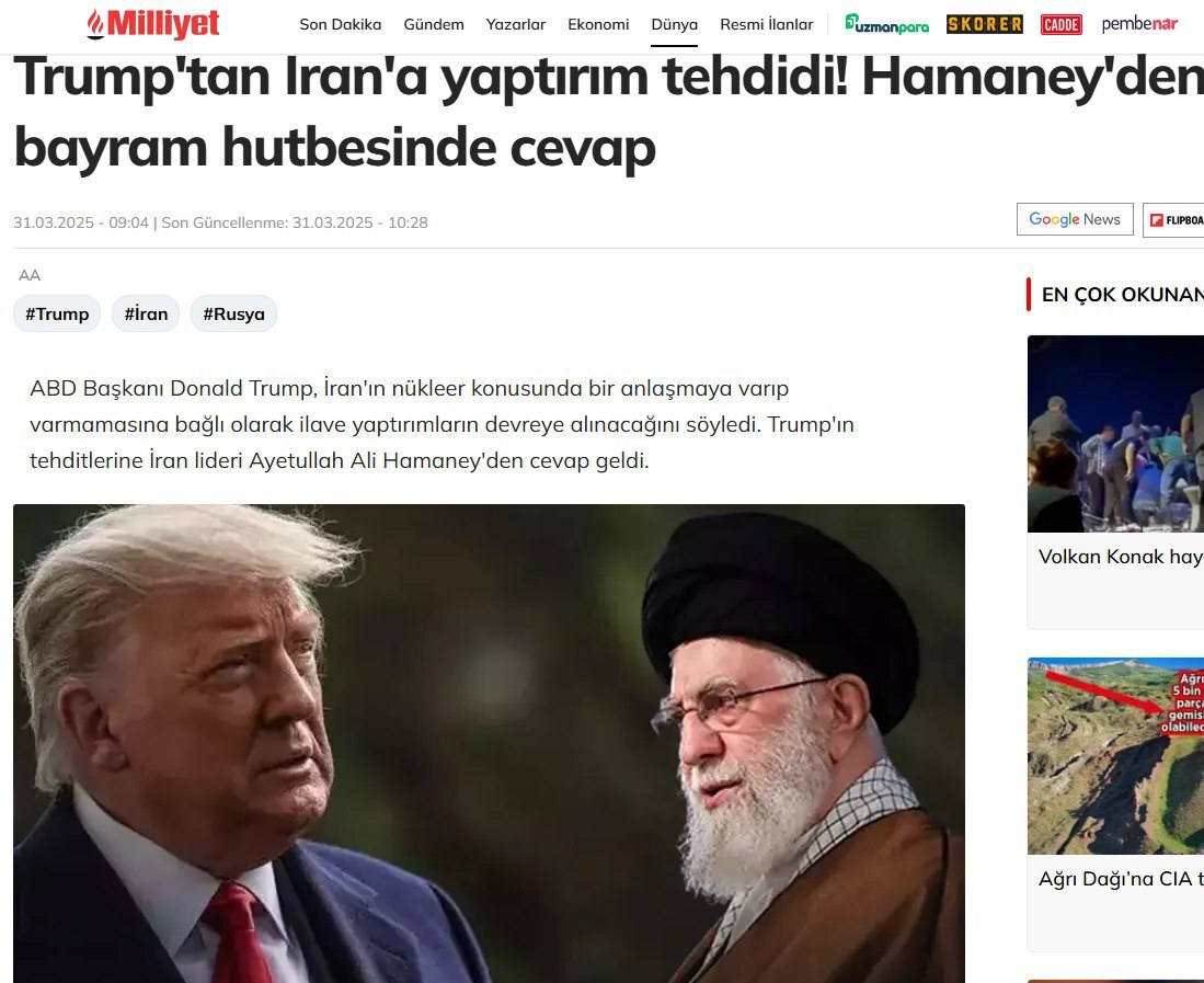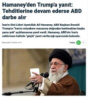 تهدیدهای آمریکا علیه ایران و پاسخ رهبر معظم انقلاب، بازتاب گستردهای در رسانههای ترکیه داشت.