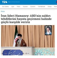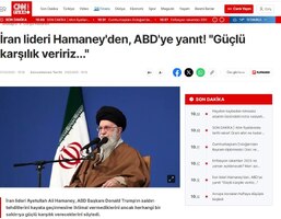 شبکه سی ان ان ترک هم در صفحۀ اینترنتی خود در خبری تحت عنوان پاسخ رهبر دینی ایران به آمریکا: با قدرت تمام مقابله خواهیم کرد نوشت آیت الله علی خامنهای معتقد است که آمریکا دست به حمله نخواهد زد ولی میگوید اگر حملهای صورت گیرد پاسخ مناسب و قدرتمندی به آن خواهیم داد.