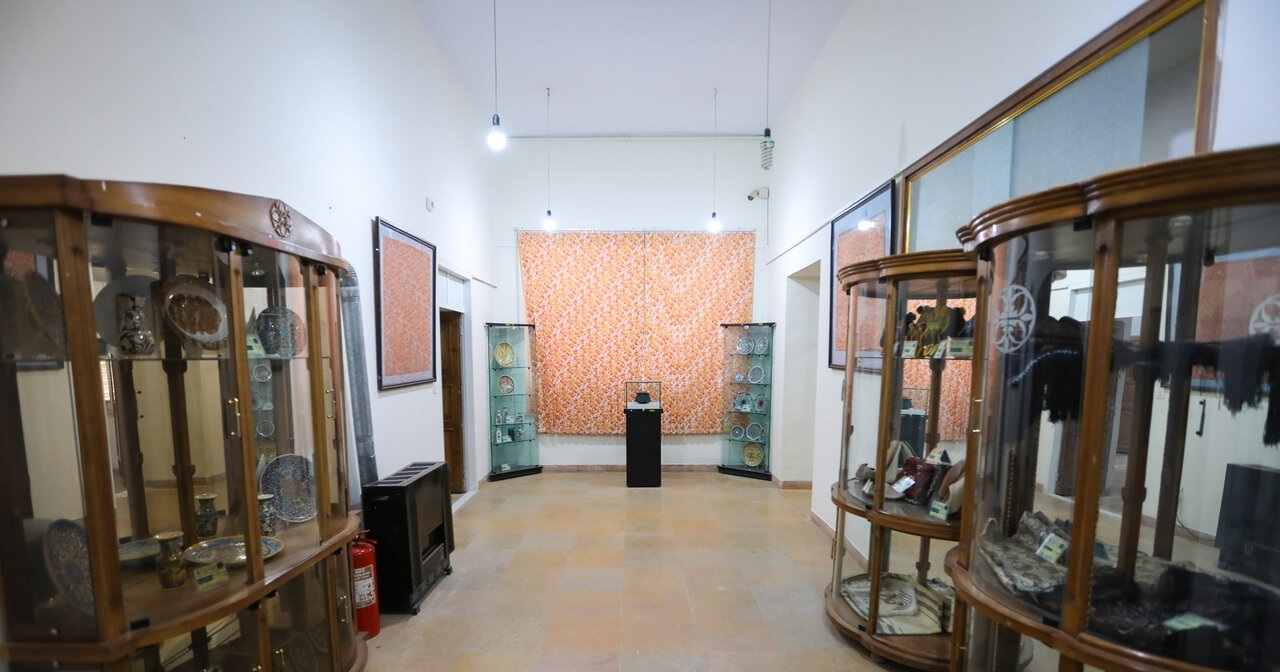 فرش دستبافت، گلیم، آثار قلمزنی، آثار چوبی، تابلو فرش و تابلو خطاطی هنرمندان استان در موزه صنایع دستی و هنرهای سنتی این عمارت به نمایش گذاشته شده است.