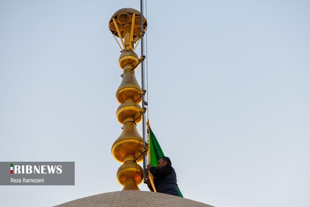 تعویض پرچم گنبد حرم حضرت معصومه (س) - قم