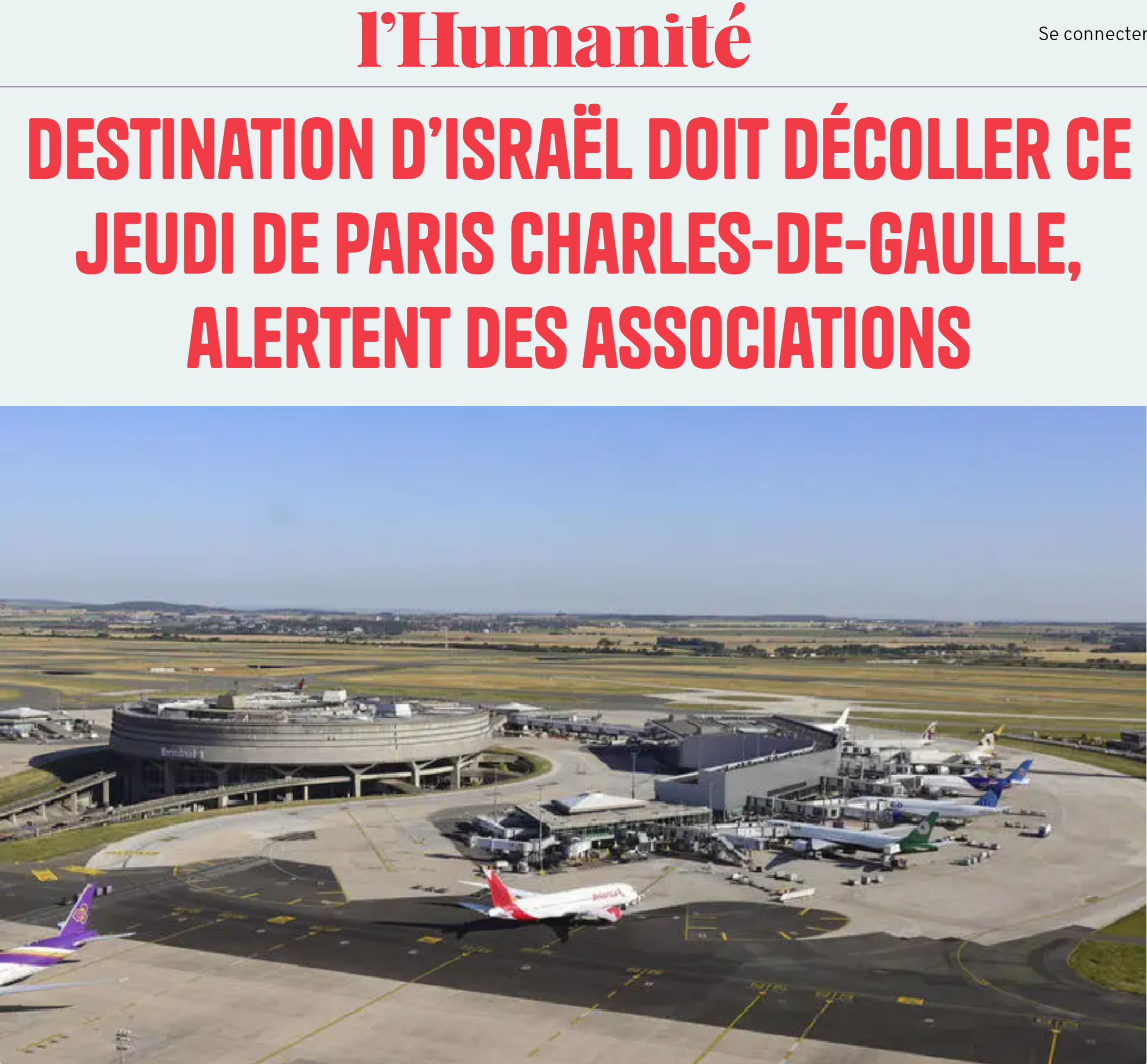 - انجمن‌ها و اتحادیه‌های کارگری حامی فلسطین هشدار داده‌اند فرانسه همچنان به ارسال تجهیزات نظامی برای اسرائیل از فرودگاه شارل دو گل پاریس ادامه می‌دهد. جدیدترین محموله قرار بود پنجشنبه ارسال شود.