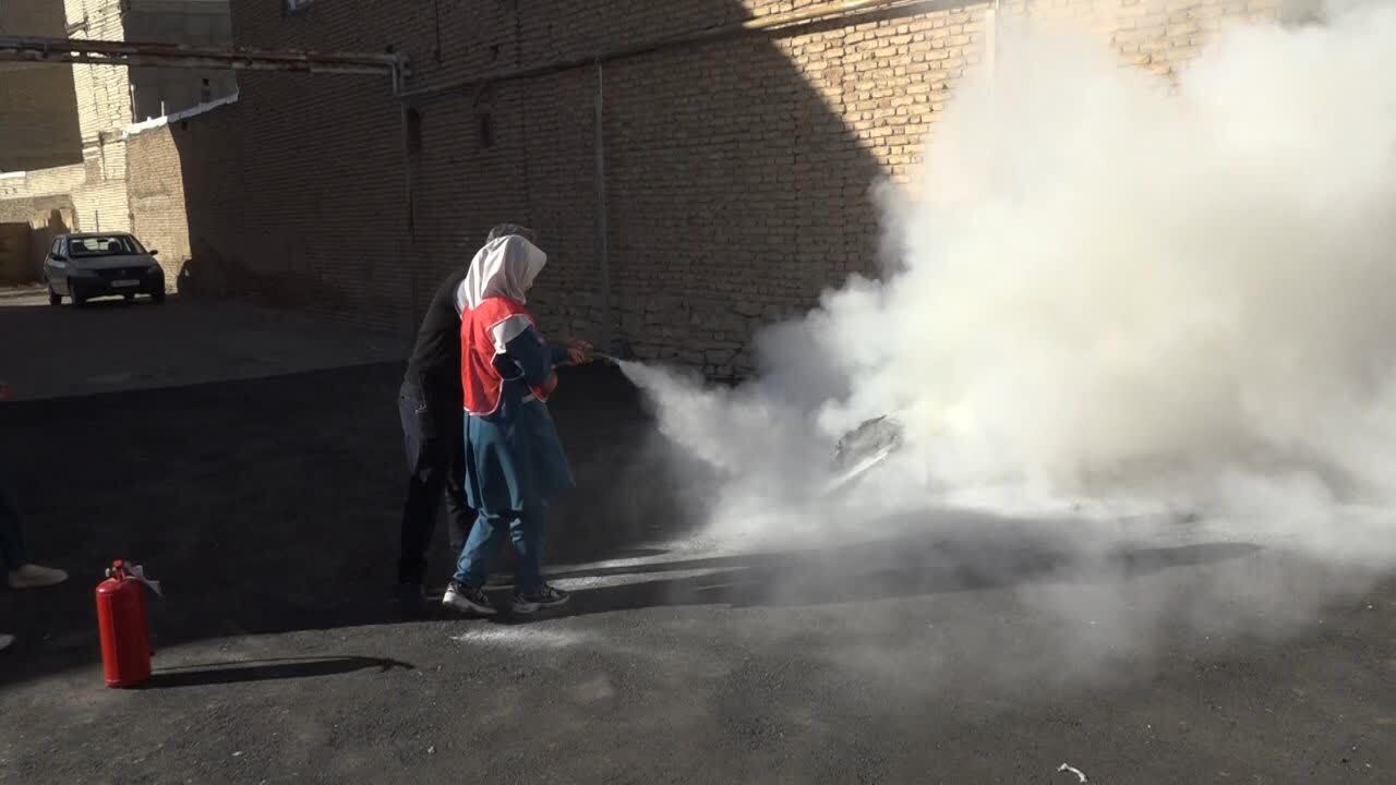دانش آموزان دختر تکابی خروج اضطراری و اطفا حریق در مدرسه را تمرین کردند.