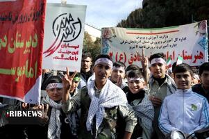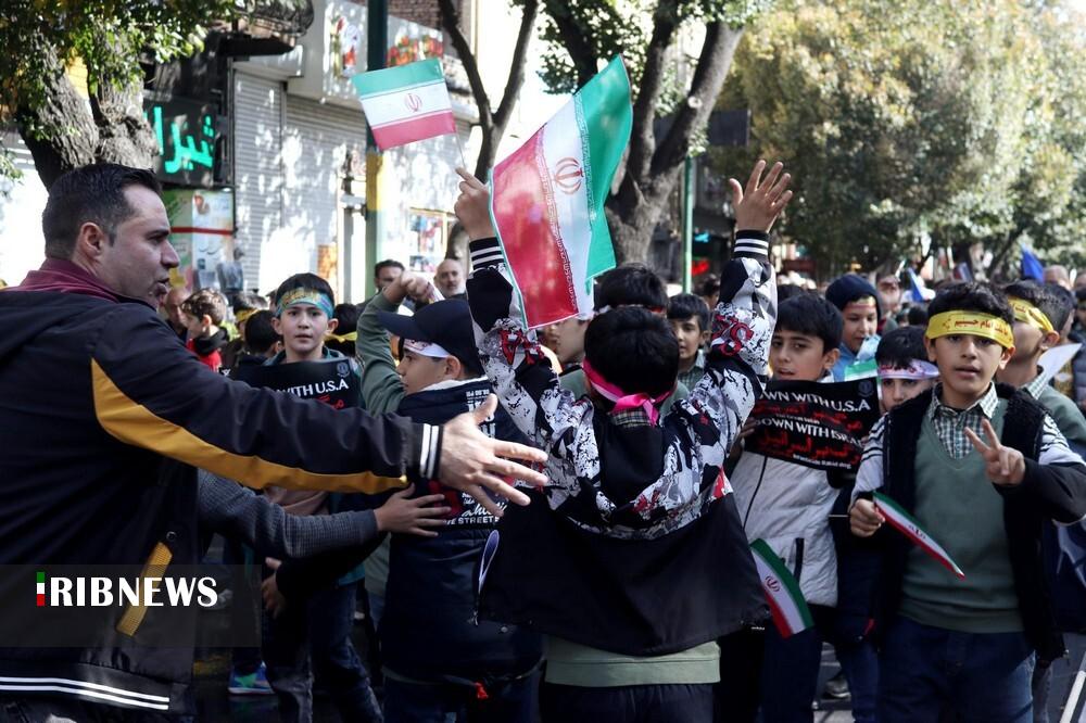 راهپیمایی یوم الله ۱۳ آبان «روز ملی مبارزه با استکبار جهانی»، با شعار «متحد و استوار، مقابل استکبار»، صبح امروز سهشنبه ۱۳ آبان ۱۴۰۴ با حضور دانشآموزان، دانشجویان و اقشار مختلف مردم در همدان و البرز و تبریز، همزمان در سراسر کشور برگزار شد.